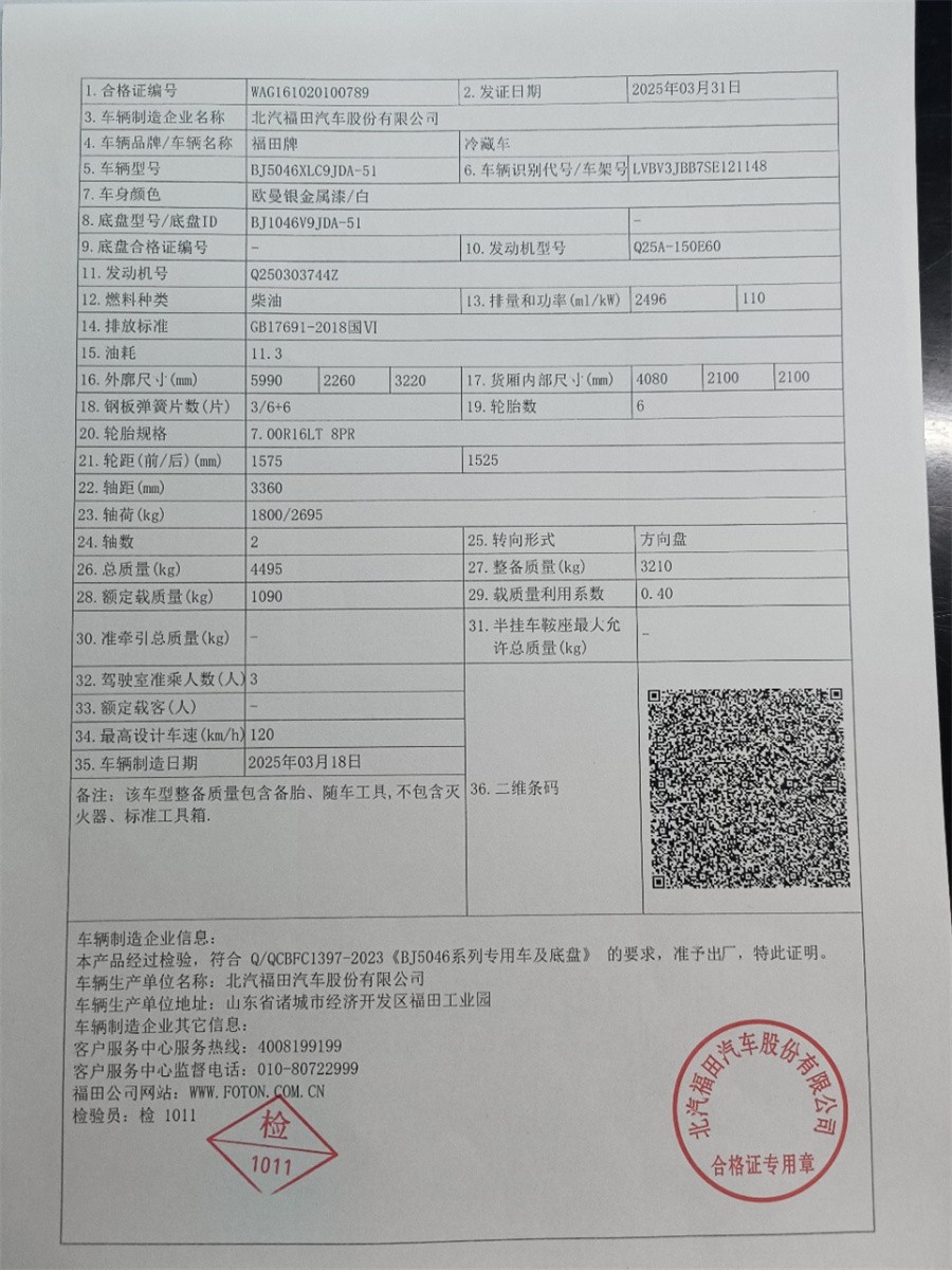 1900駕駛室,3360軸距,Q25A-150E60發(fā)動機(扭矩405NM),5檔變速箱,5噸后橋,7.00R16鋼絲胎,170×55×5車架,空調(diào)、中控鎖電動門窗,多功能方向盤、巡航。