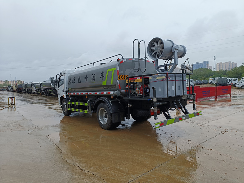 、側(cè)噴、后置式工作平臺,平臺上配置綠化水炮(可 360°旋轉(zhuǎn),既可以調(diào)成柱狀